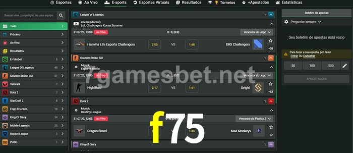 O f75 oferece uma grande seleção de opções de apostas em e-sports com probabilidades competitivas